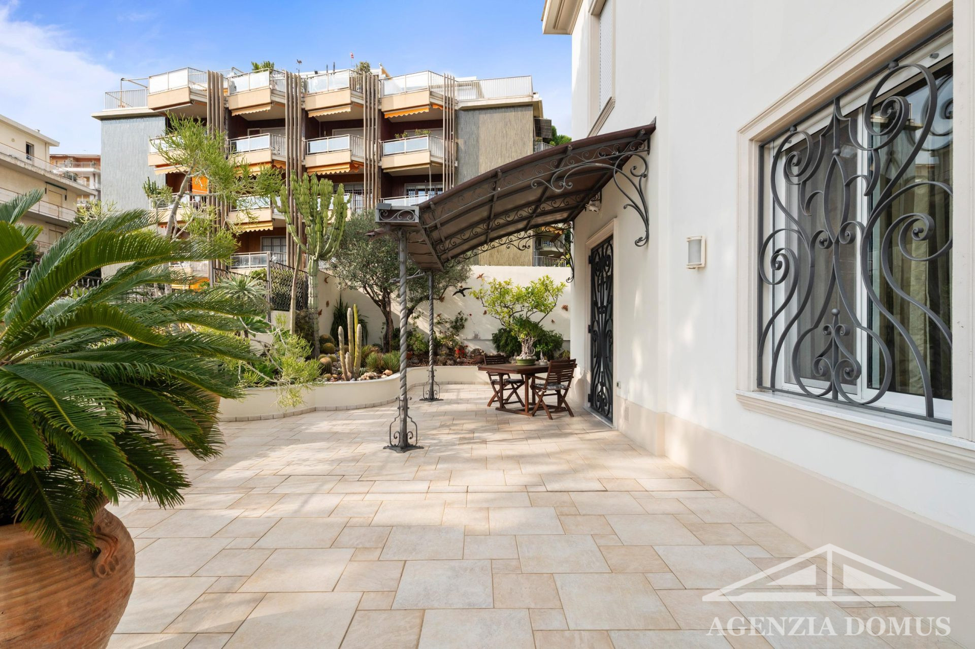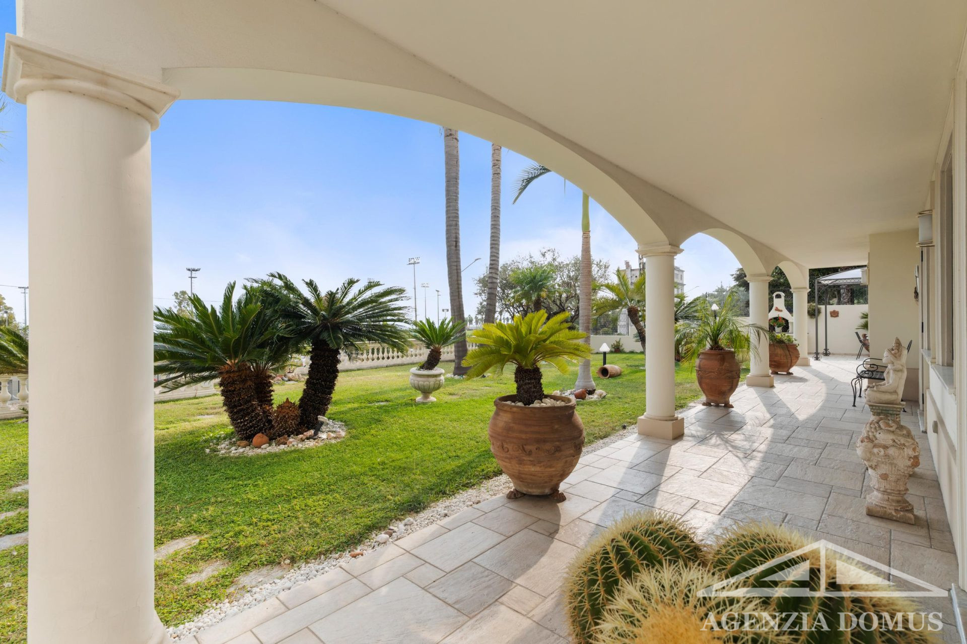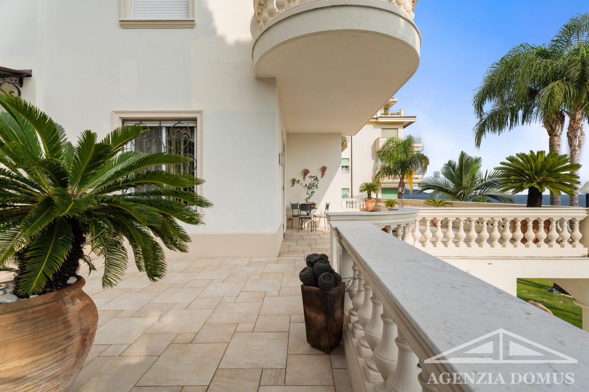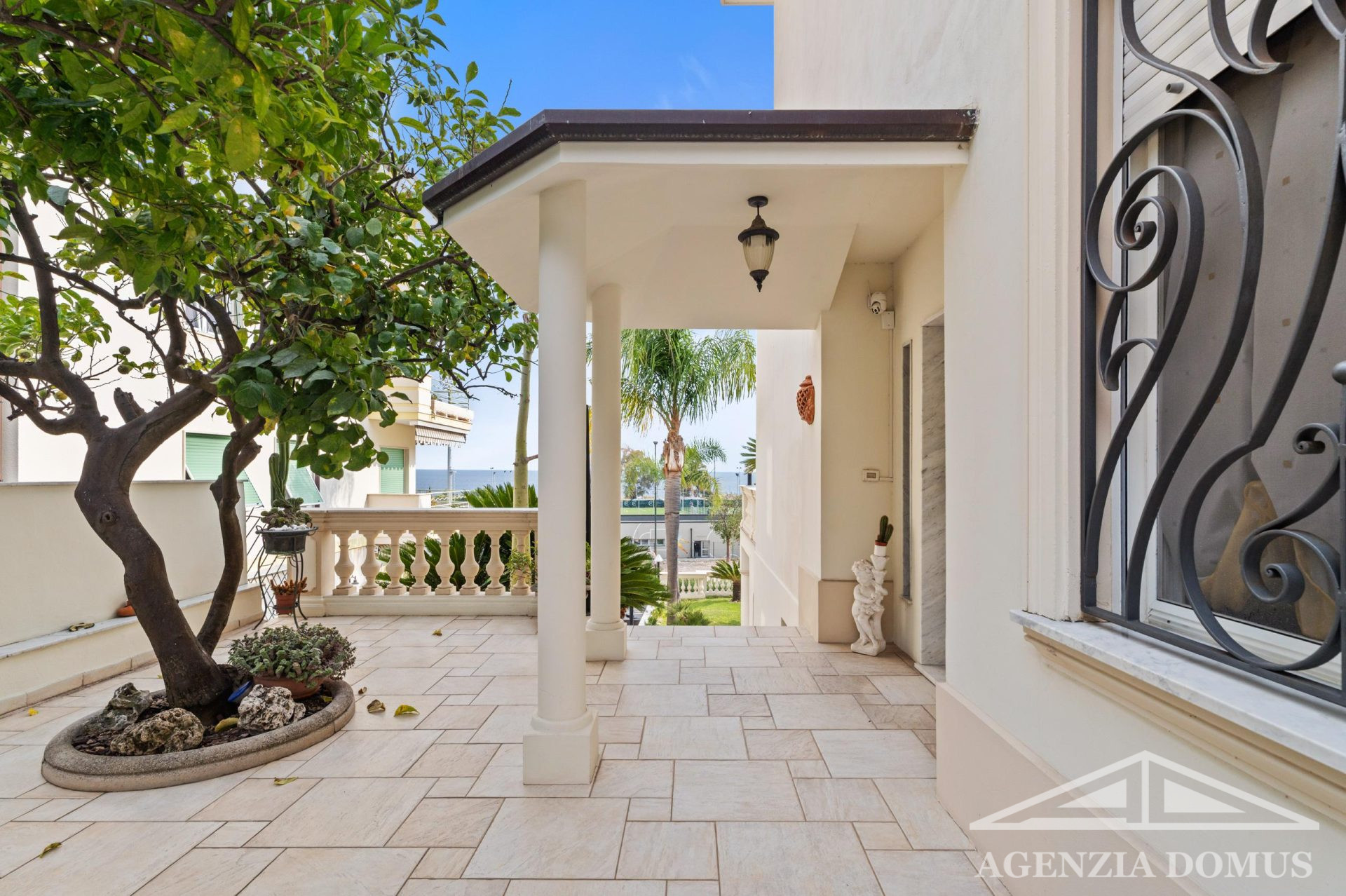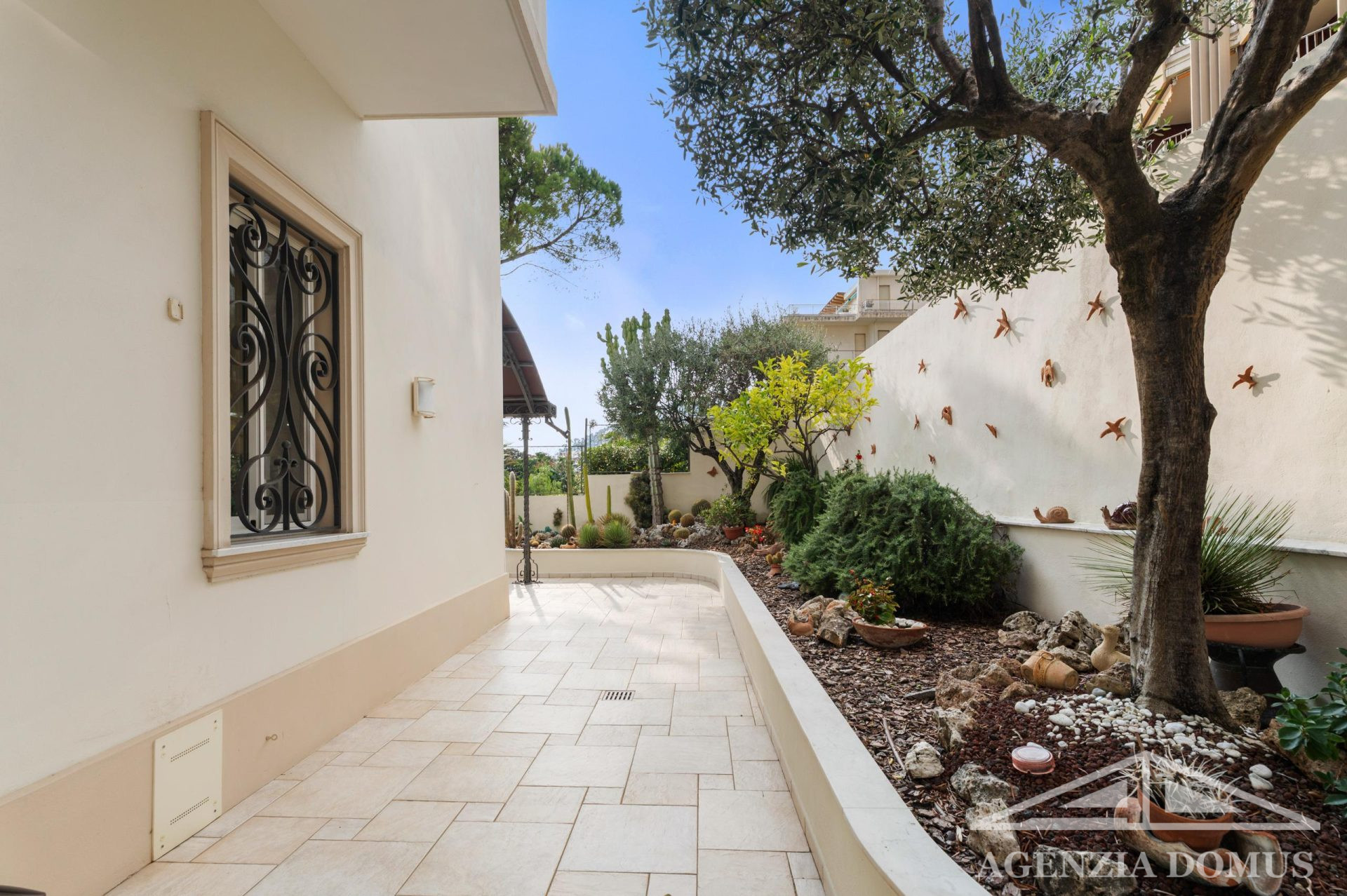 La villa è in perfette condizioni sia interne che esterne, dotata di aria condizionata e impianto di allarme. All’esterno, un curato giardino di circa 180 mq con palme rare e agrumi circonda la casa, mentre i terrazzi, con una superficie complessiva di circa 280 mq, offrono spazi ideali per vivere all’aperto tutto l’anno.