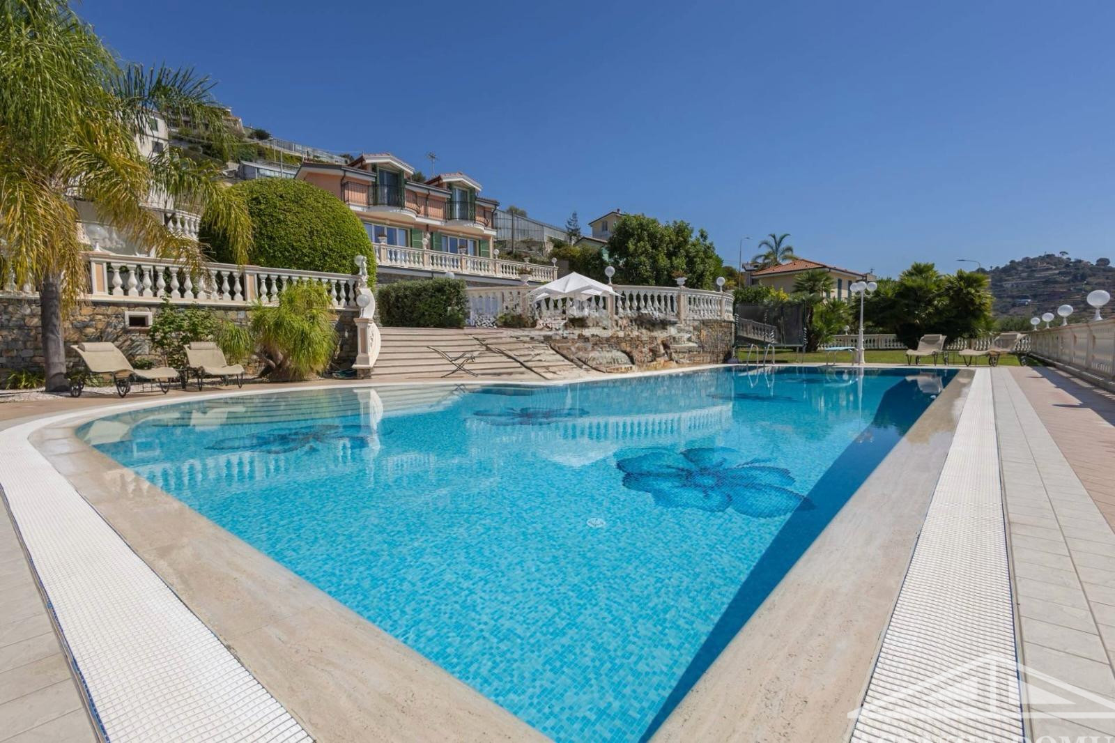 All’esterno la proprietà offre una grande piscina, un giardino pianeggiante con prato, palme e ulivi, e una zona barbecue ideale per stare all’aperto la gran parte dell'anno grazie al clima mite di Ospedaletti.