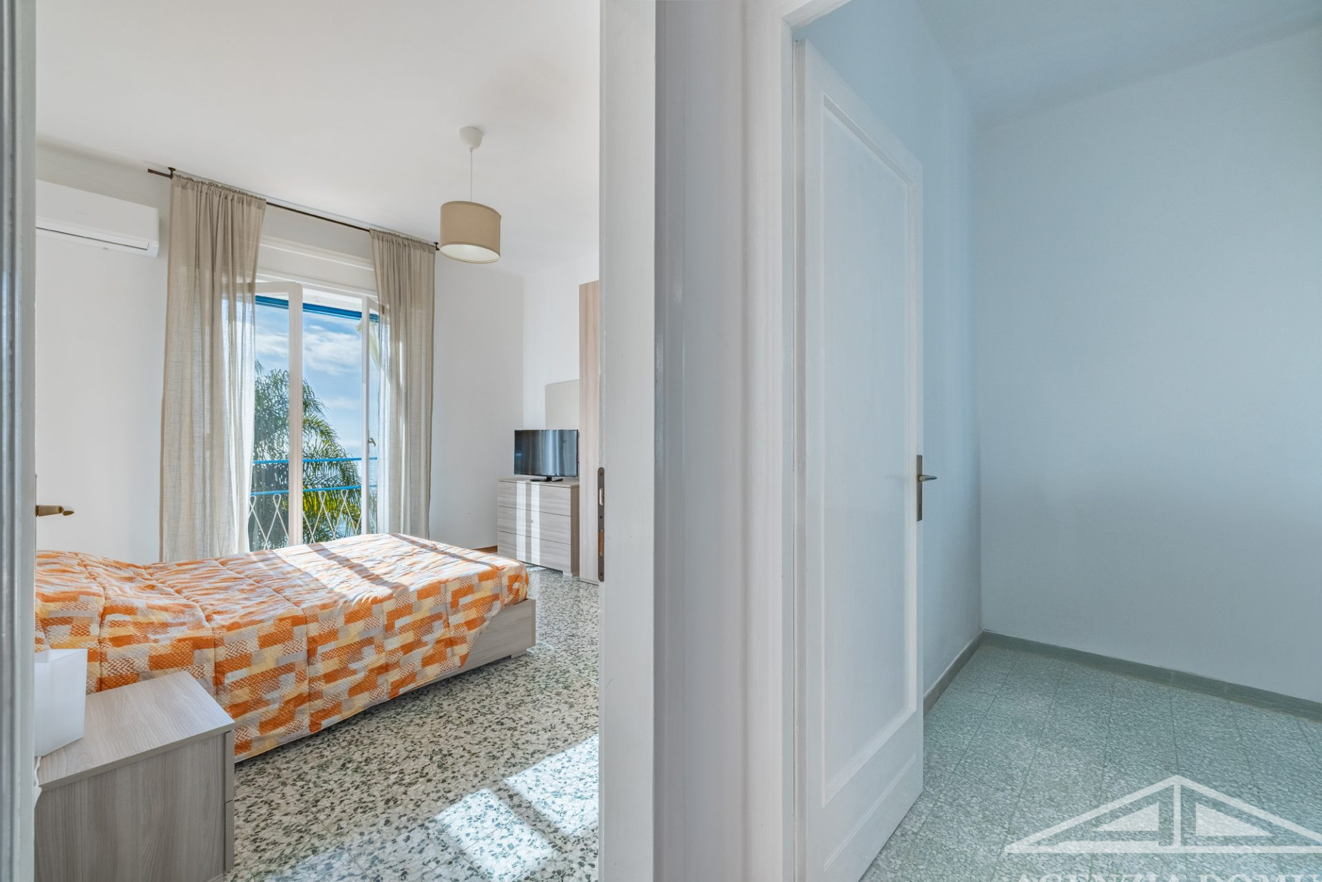 Internamente si compone d’ingresso, soggiorno con balcone con vista mare, cucina abitabile con balcone, camera matrimoniale con balcone privato, cameretta e bagno con doccia.