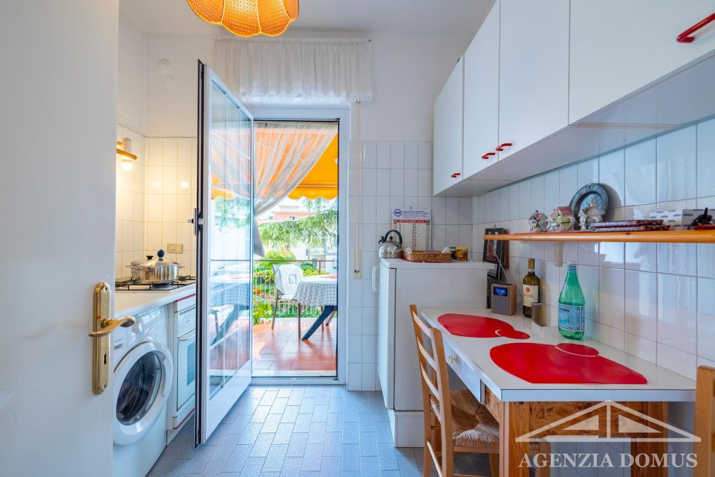 Gli spazi interni si presentano funzionali e ben distribuiti: ingresso, soggiorno con accesso al terrazzo, cucina abitabile con secondo terrazzo, camera da letto con terrazzo privato, bagno con vasca e pratico ripostiglio.