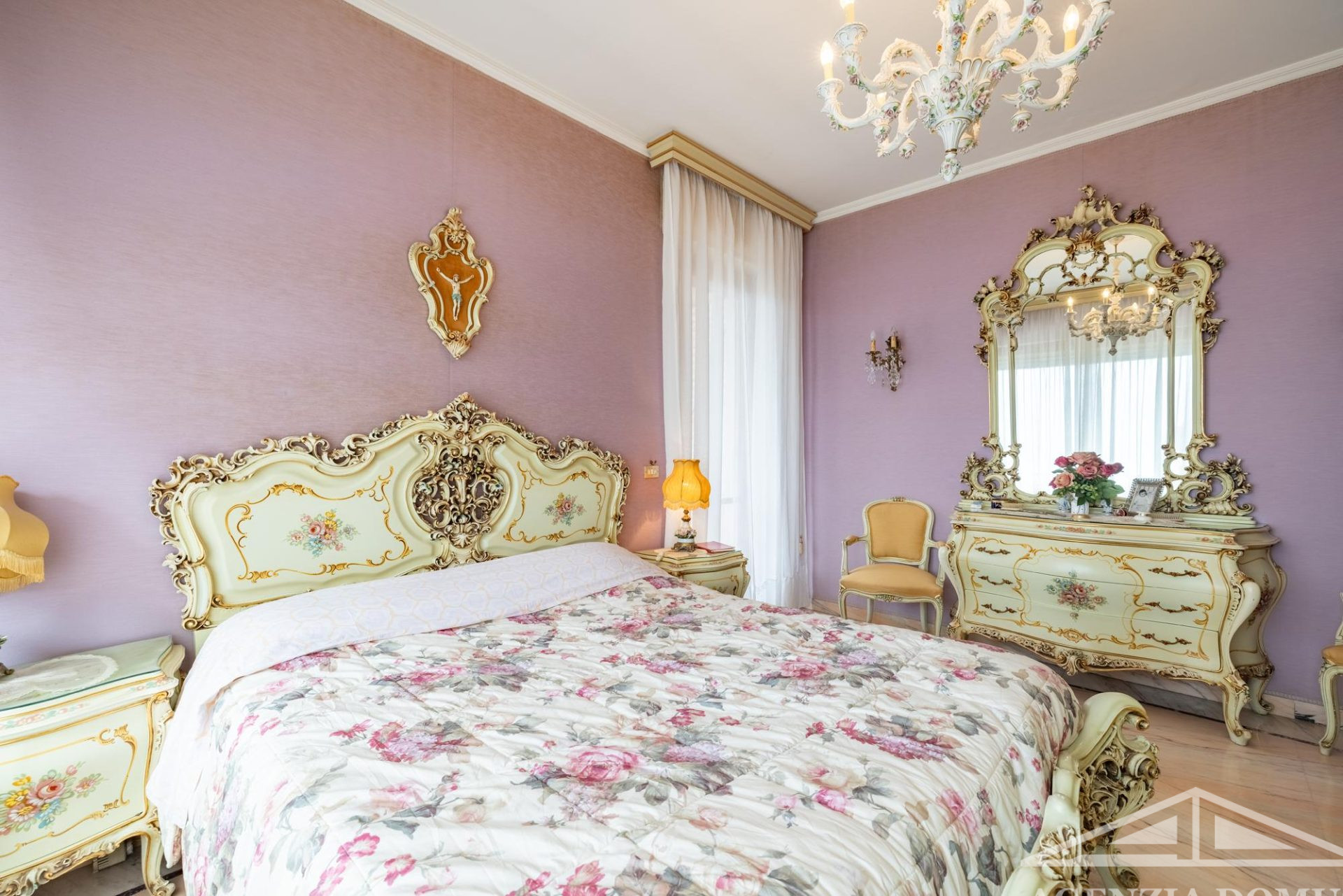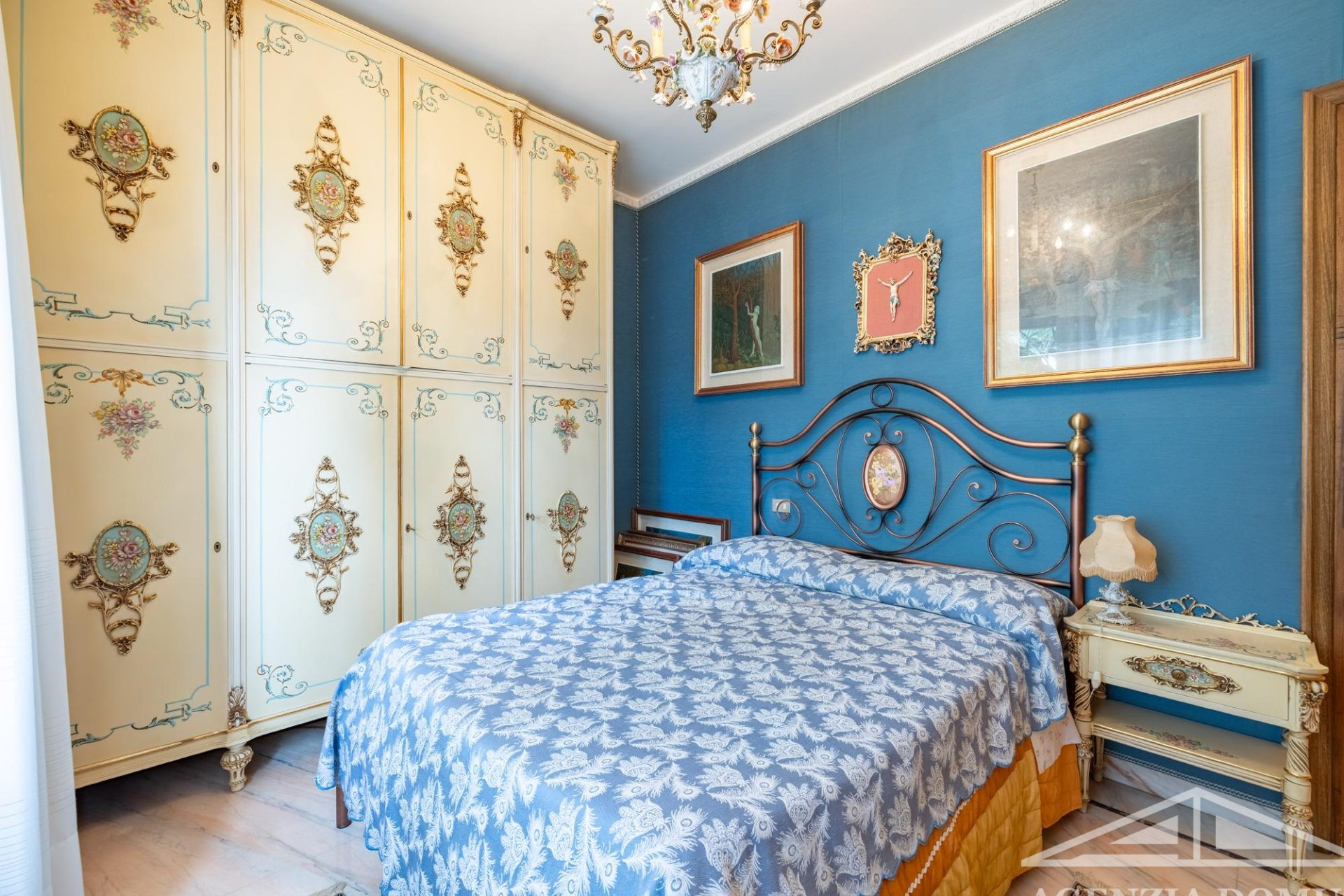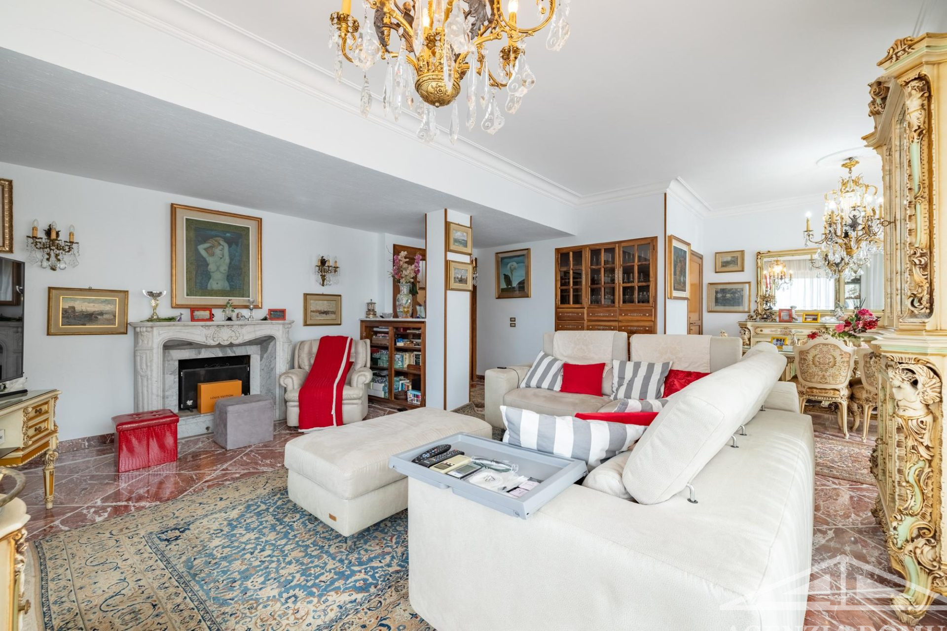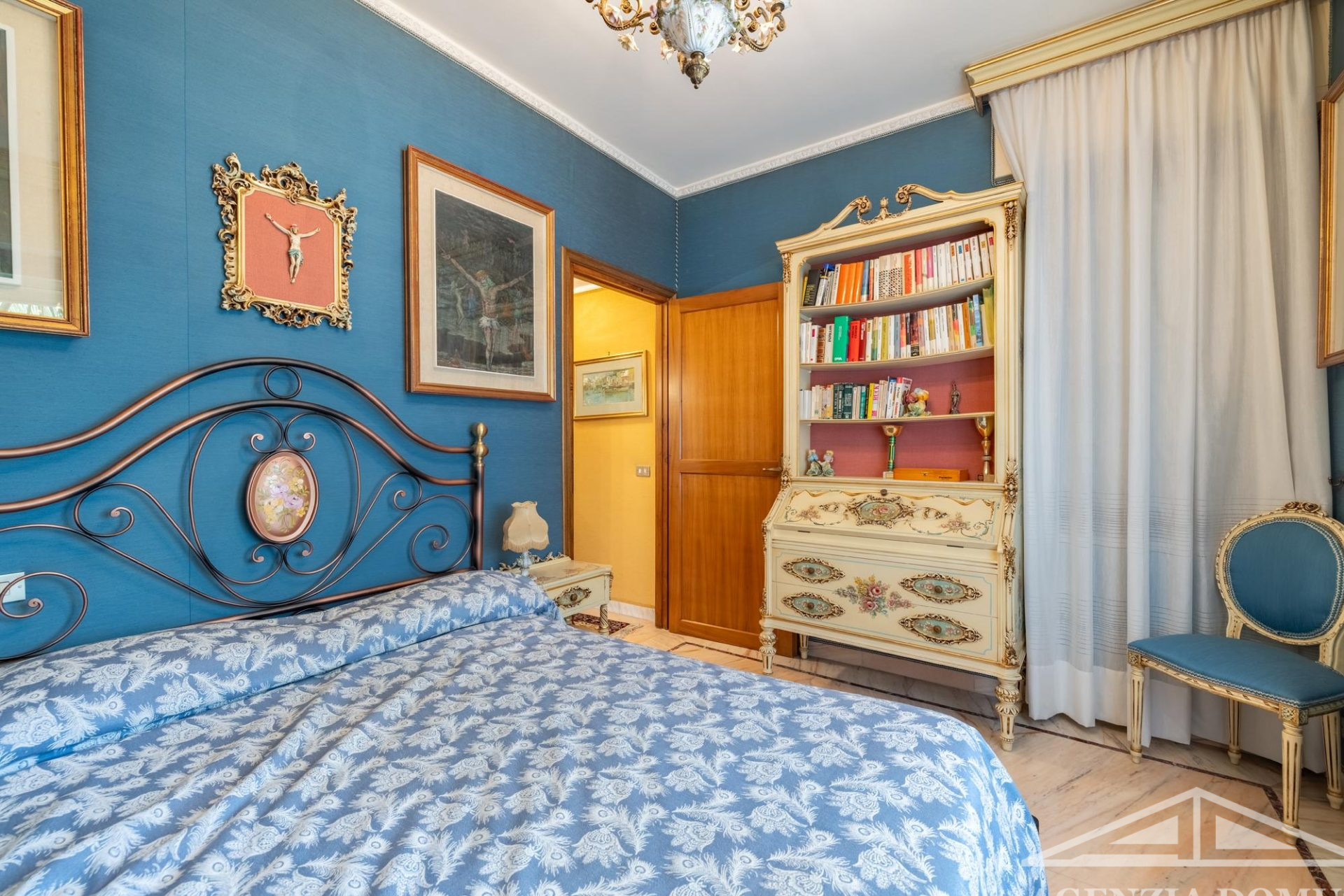Gli ambienti risultano particolarmente curati e impreziositi da raffinati dettagli in passamaneria, eleganti carte da parati, marmi pregiati e piastrelle decorate a mano, elementi che donano alla casa uno stile elegante e ricercato.
