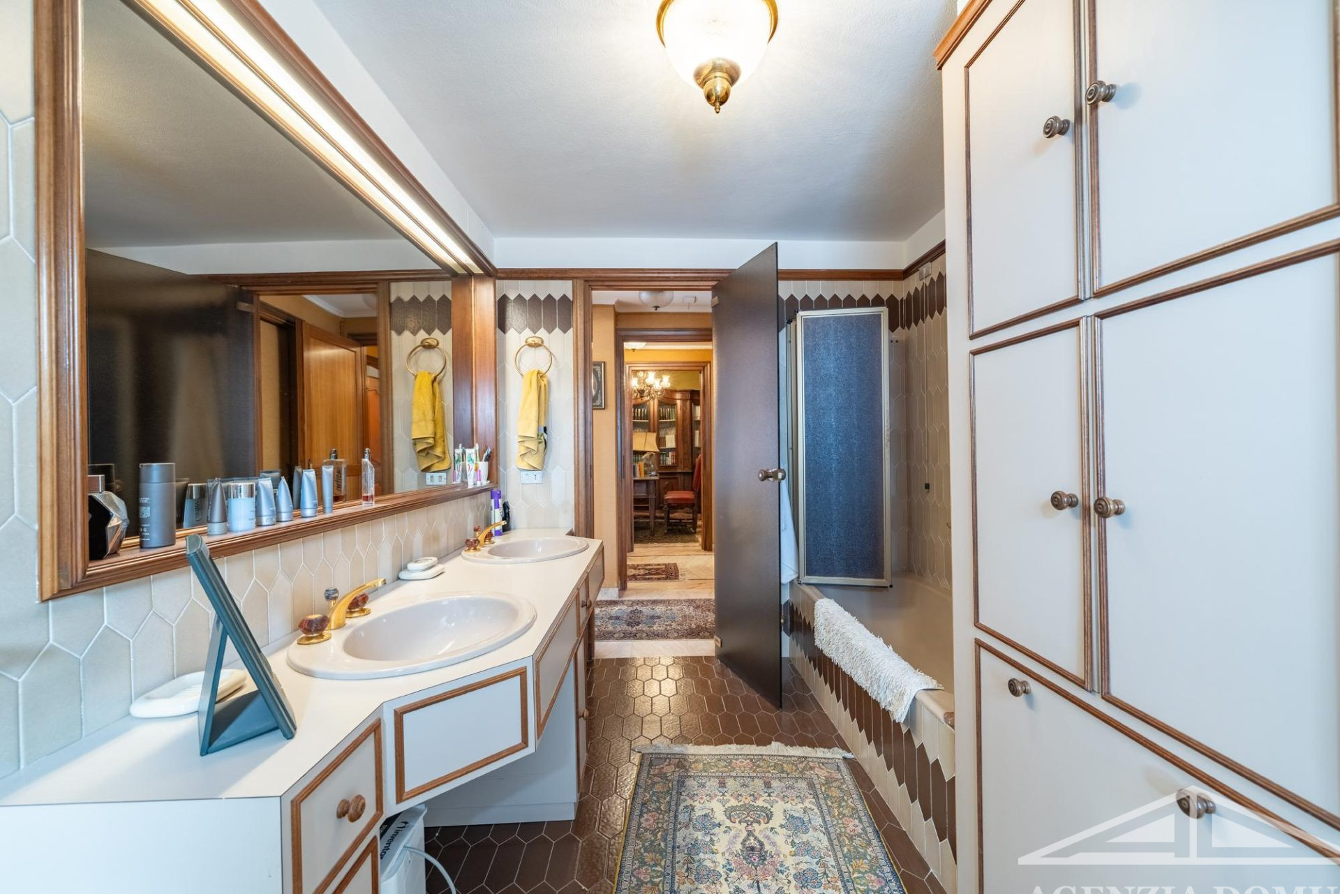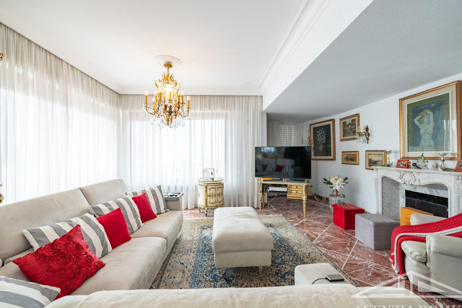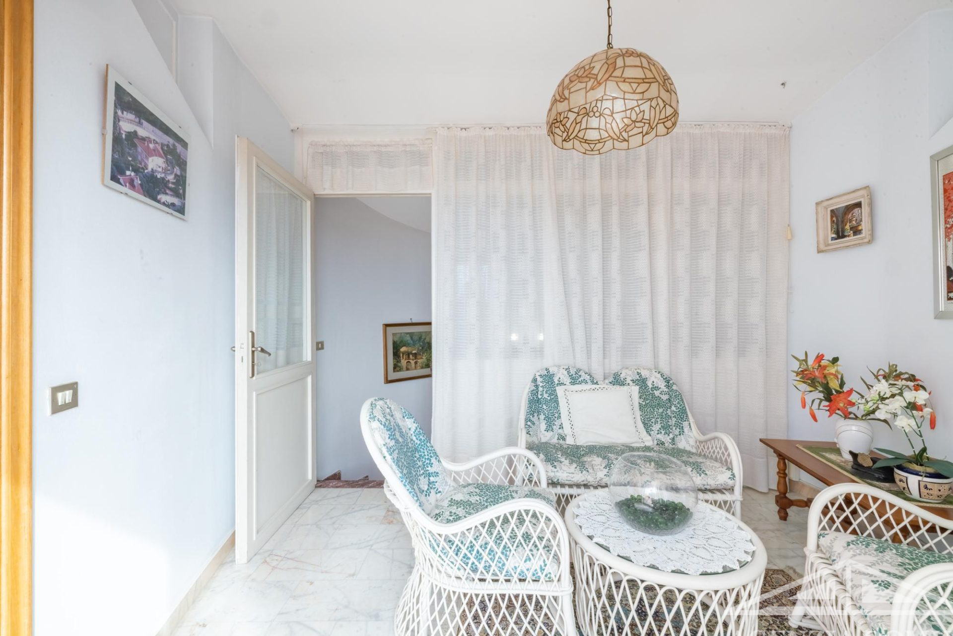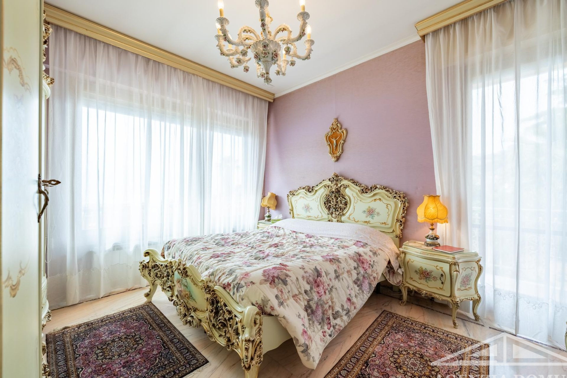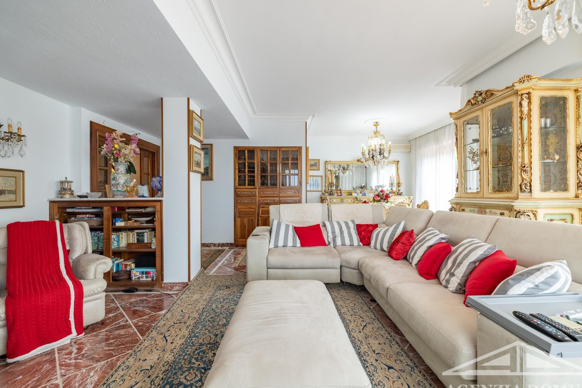 Gli ambienti risultano particolarmente curati e impreziositi da raffinati dettagli in passamaneria, eleganti carte da parati, marmi pregiati e piastrelle decorate a mano, elementi che donano alla casa uno stile elegante e ricercato.