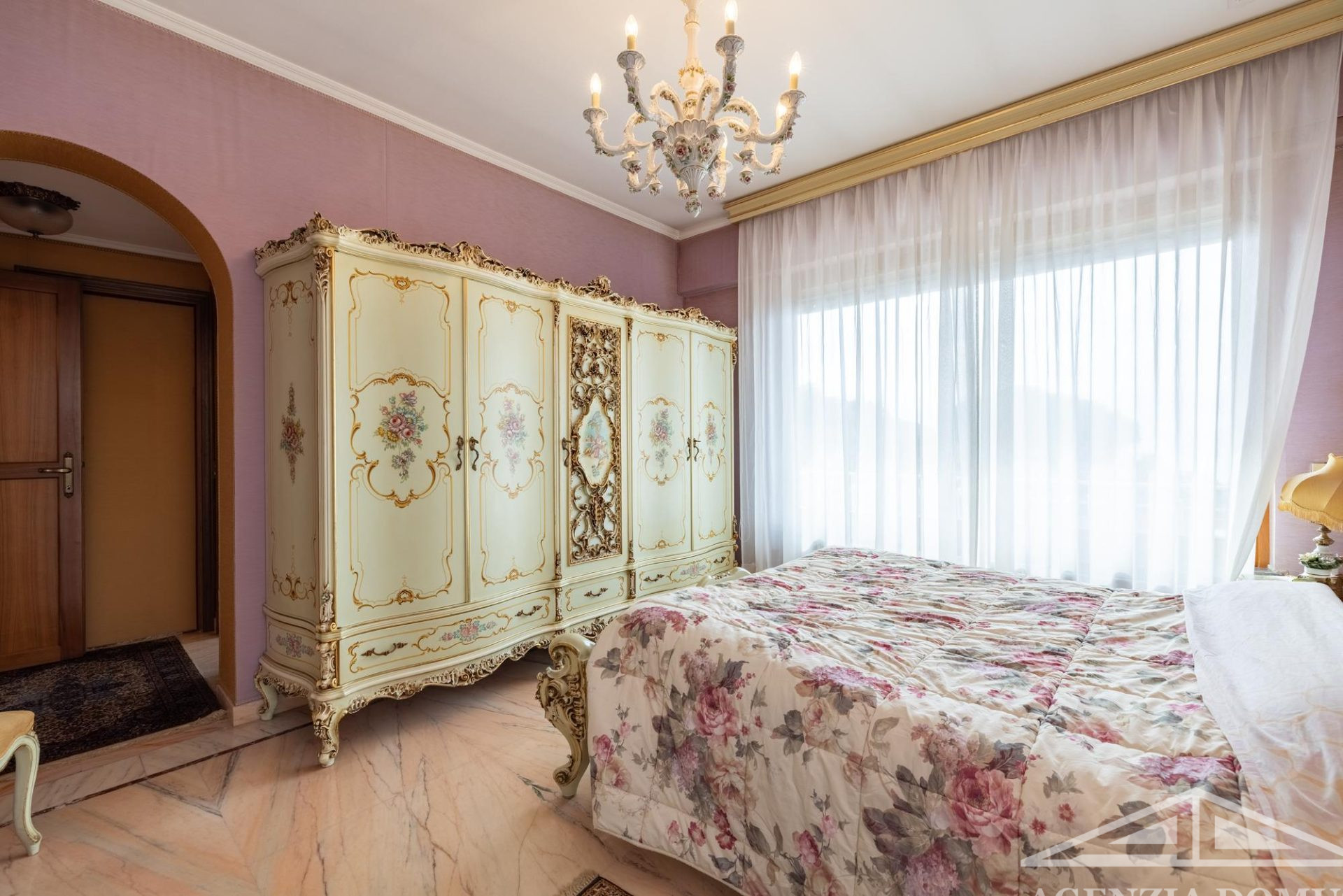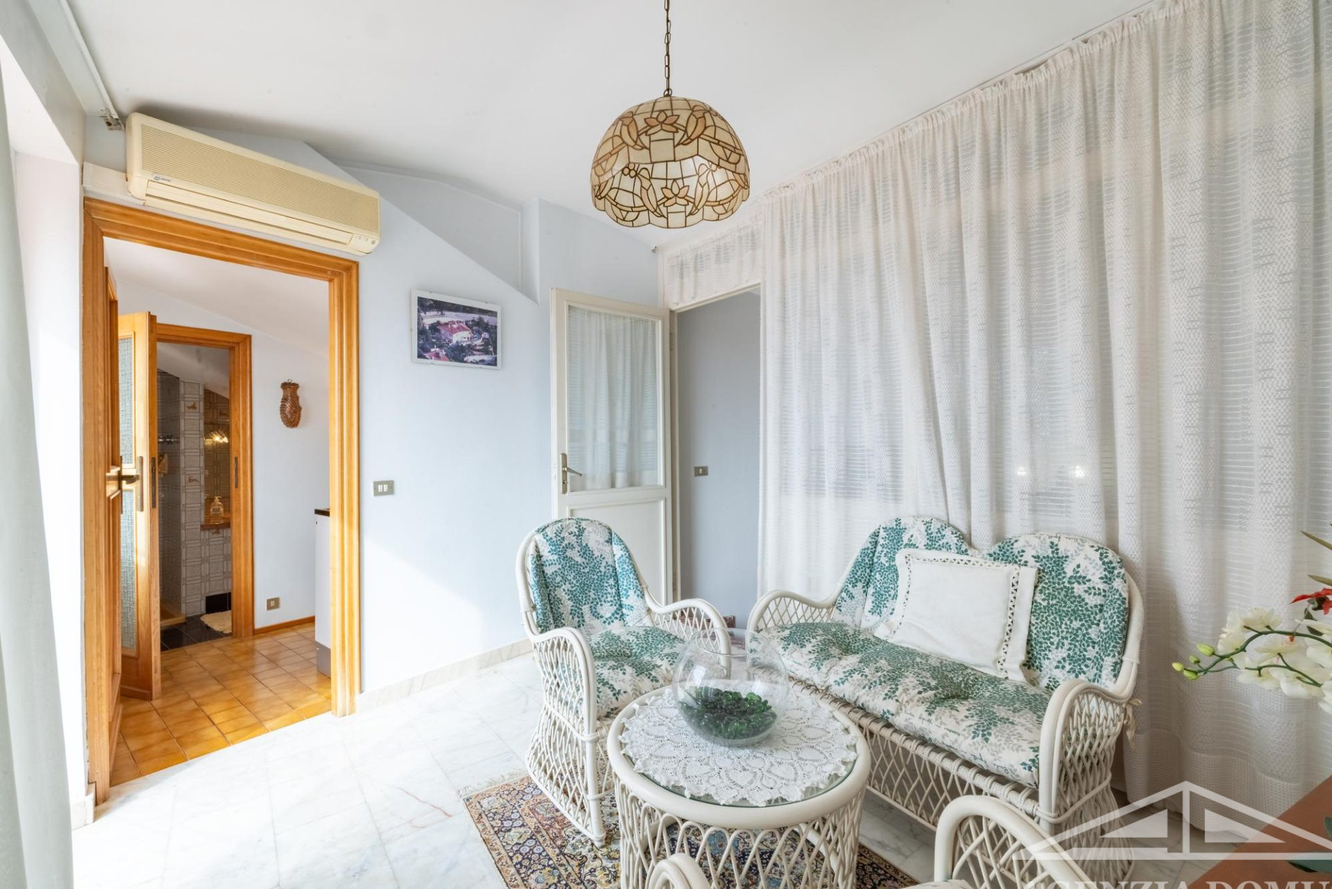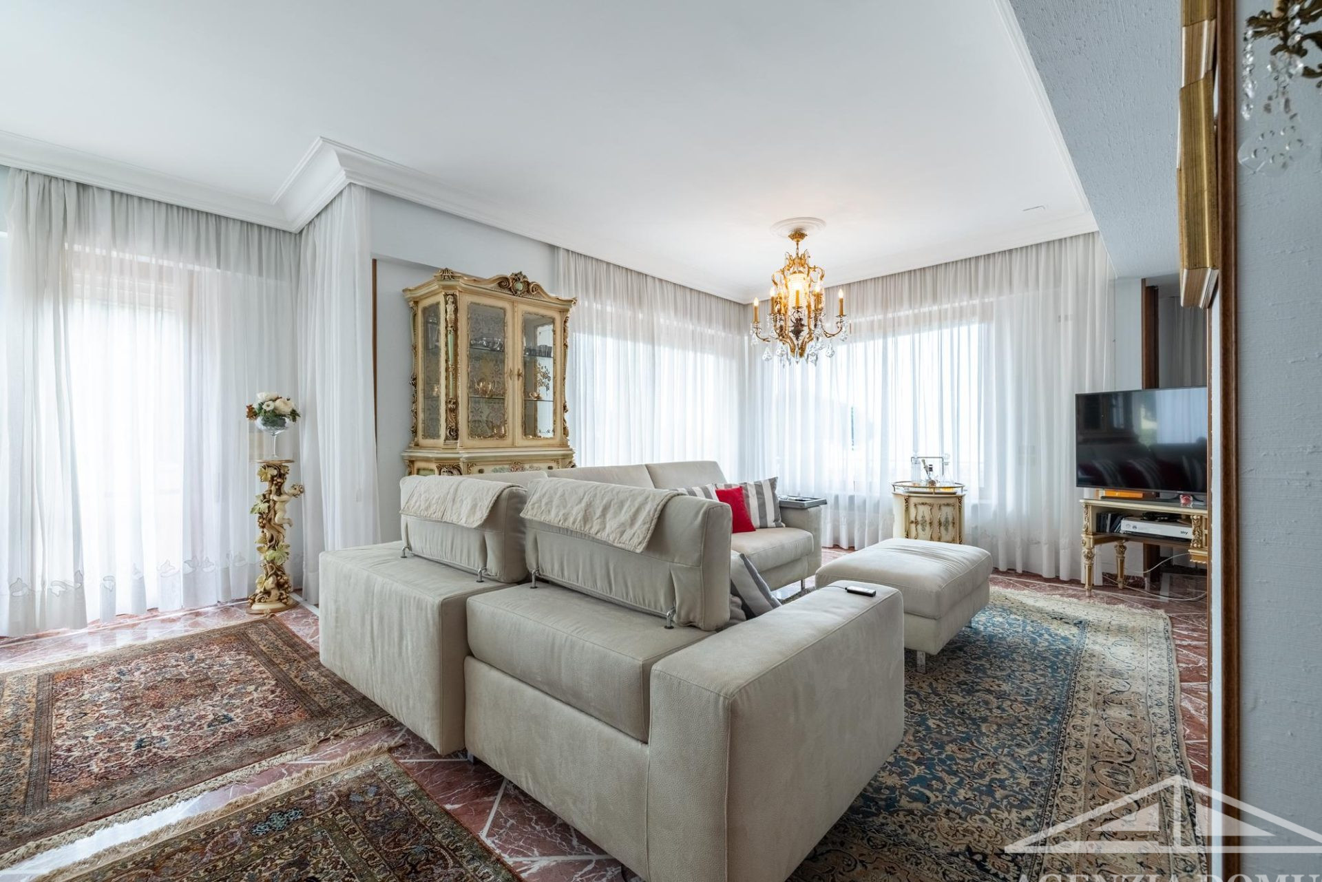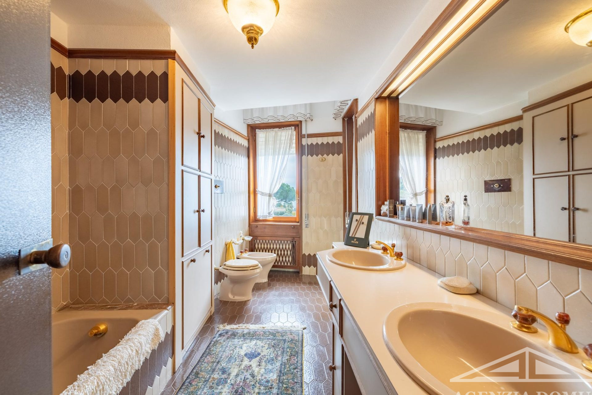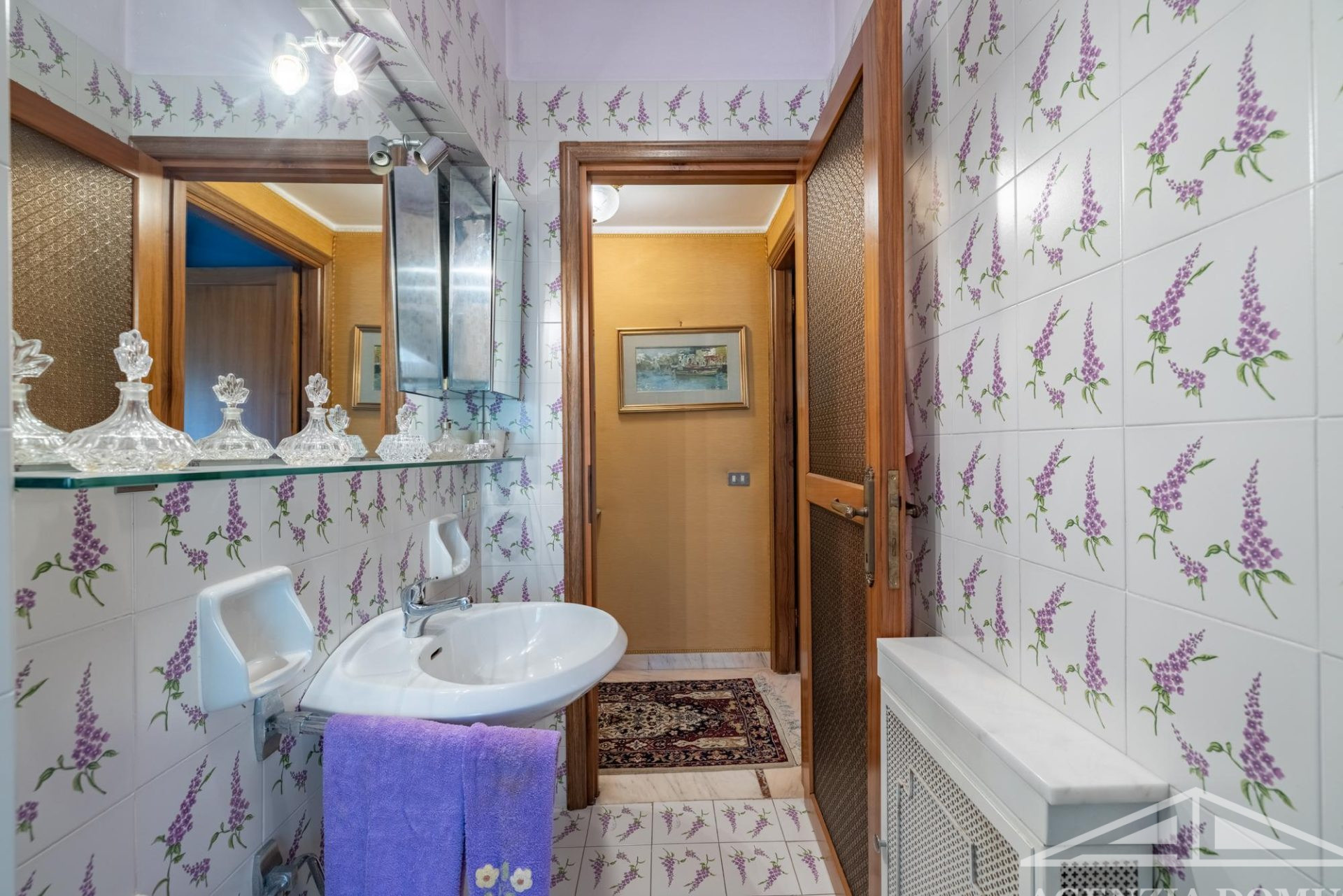 Gli ambienti risultano particolarmente curati e impreziositi da raffinati dettagli in passamaneria, eleganti carte da parati, marmi pregiati e piastrelle decorate a mano, elementi che donano alla casa uno stile elegante e ricercato.