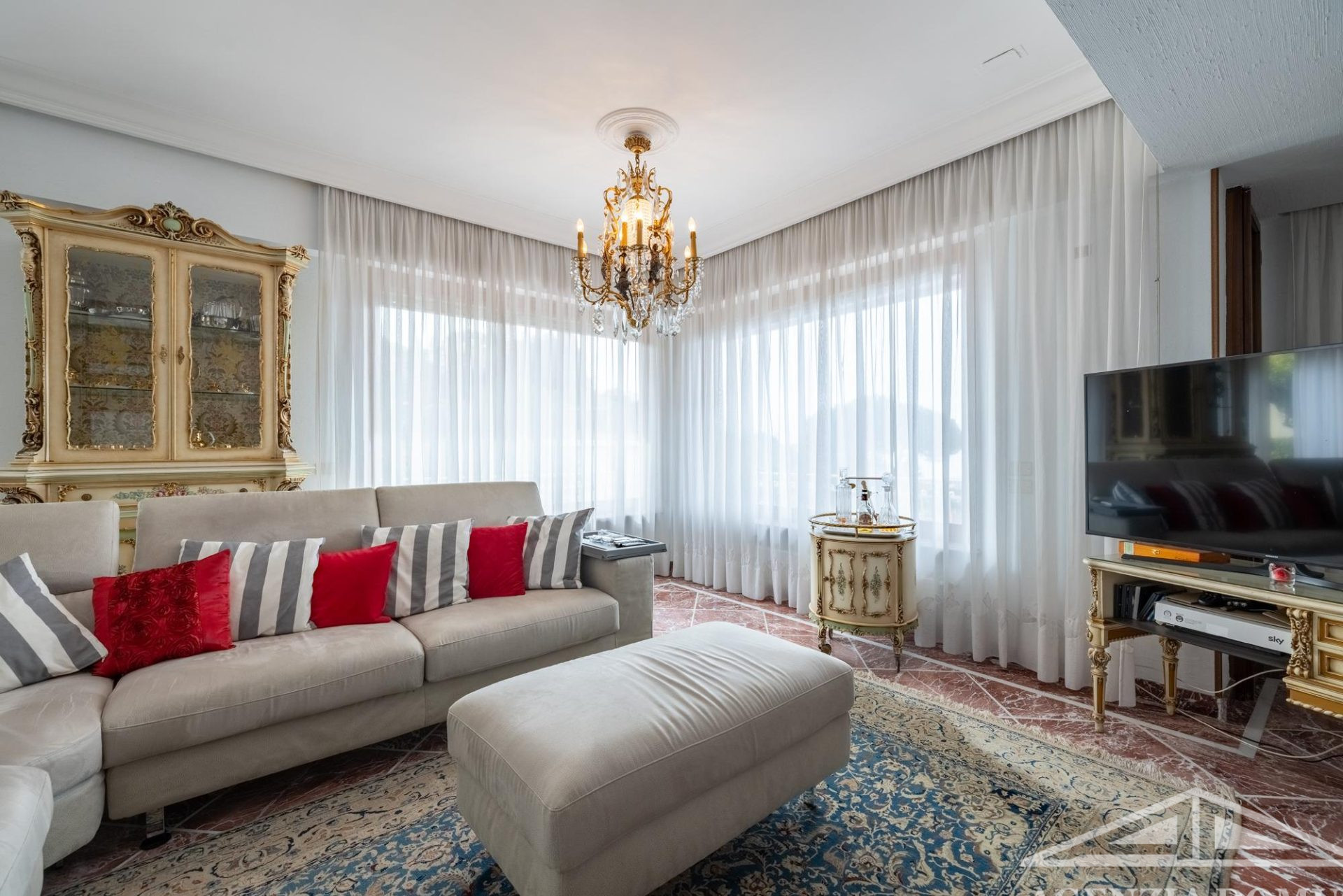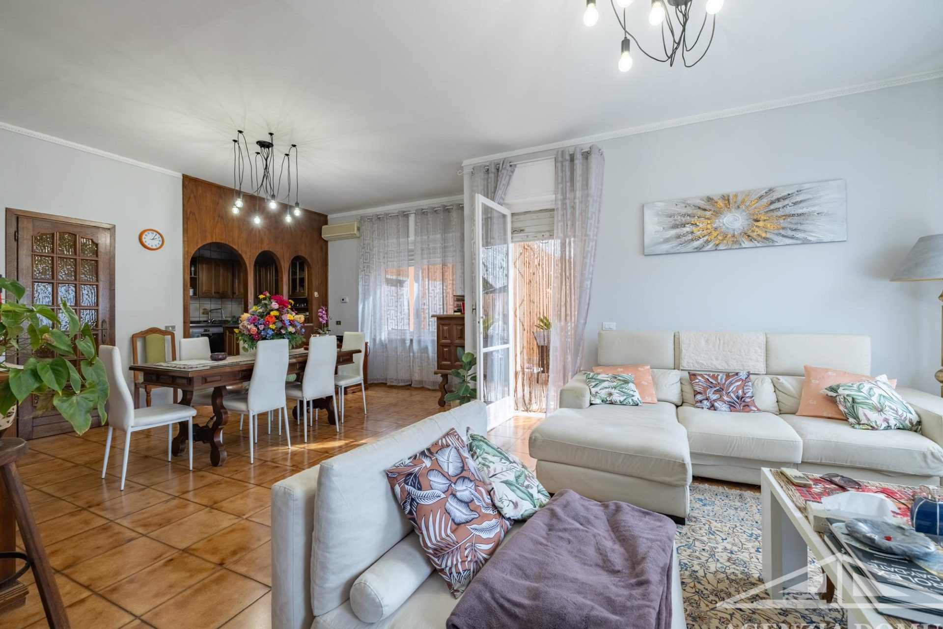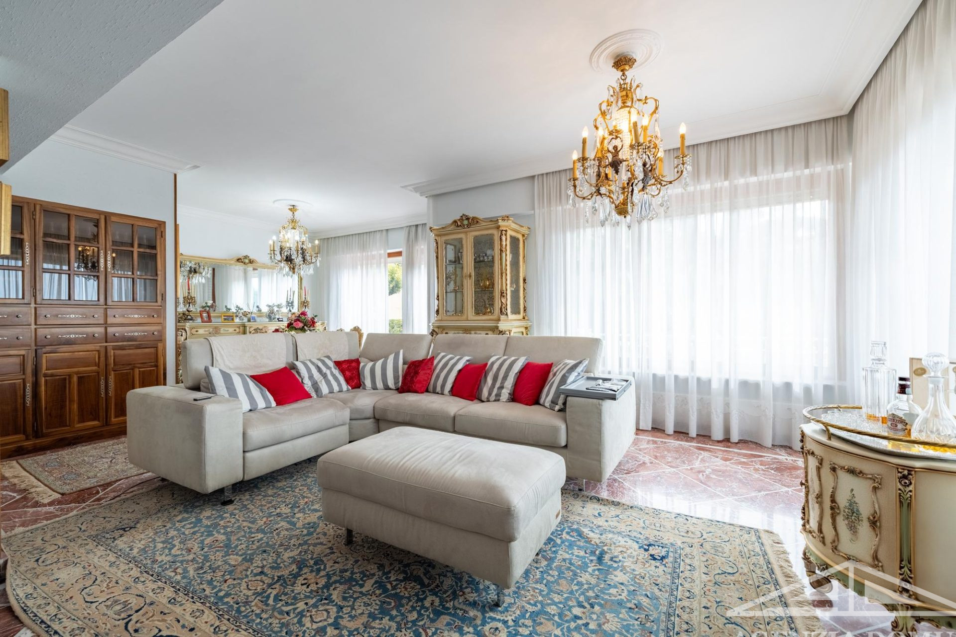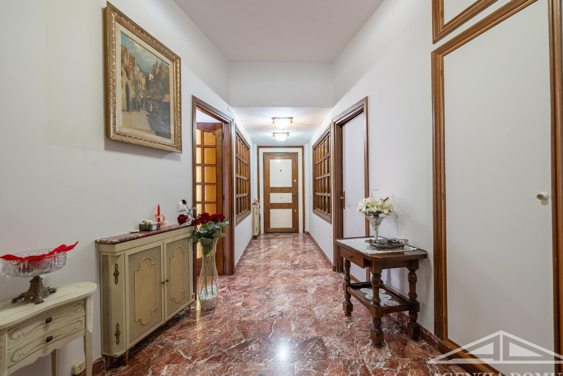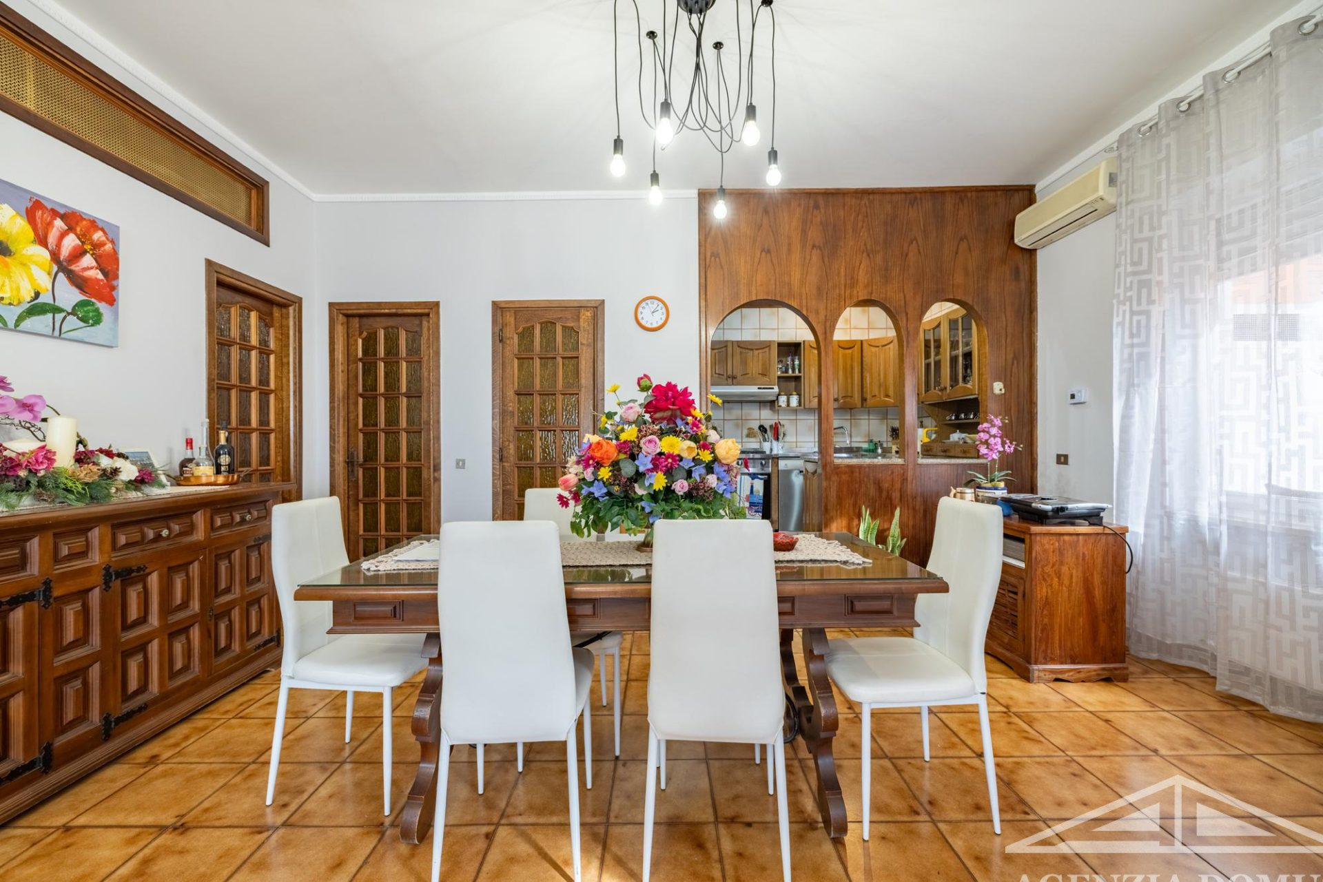 Gli ambienti risultano particolarmente curati e impreziositi da raffinati dettagli in passamaneria, eleganti carte da parati, marmi pregiati e piastrelle decorate a mano, elementi che donano alla casa uno stile elegante e ricercato.