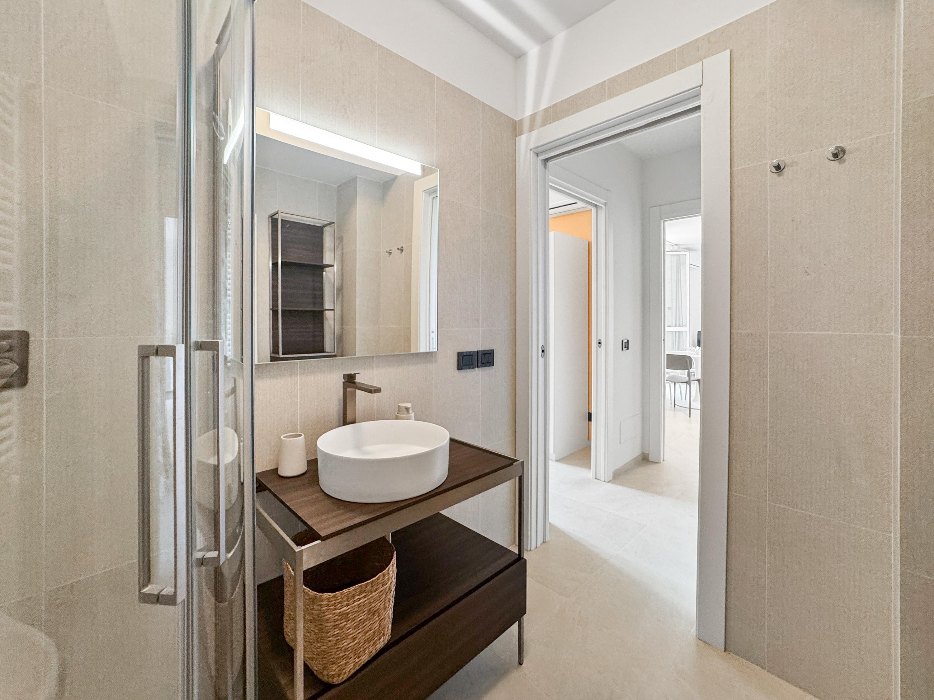 affacciati su un balcone riservato; una camera matrimoniale luminosa, un bagno con doccia e una comoda zona ripostiglio/lavanderia.